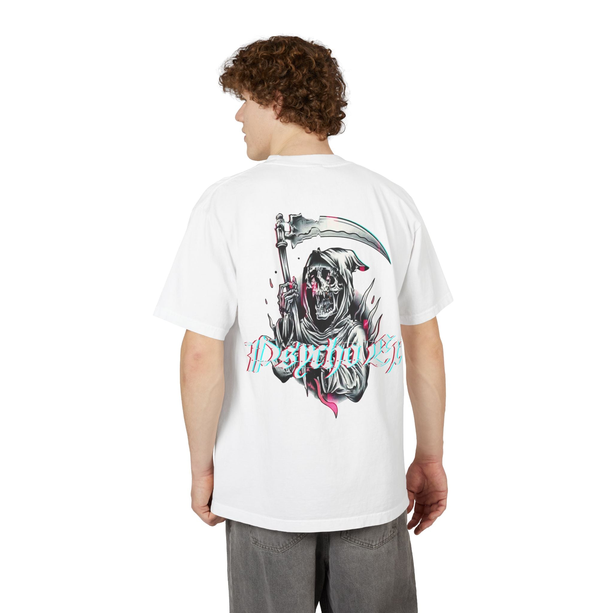 This oversized white tee features a glitched-out Grim Reaper and our signature corrupted aesthetic. Made for souls stuck between dimensions — or just ghosting reality.